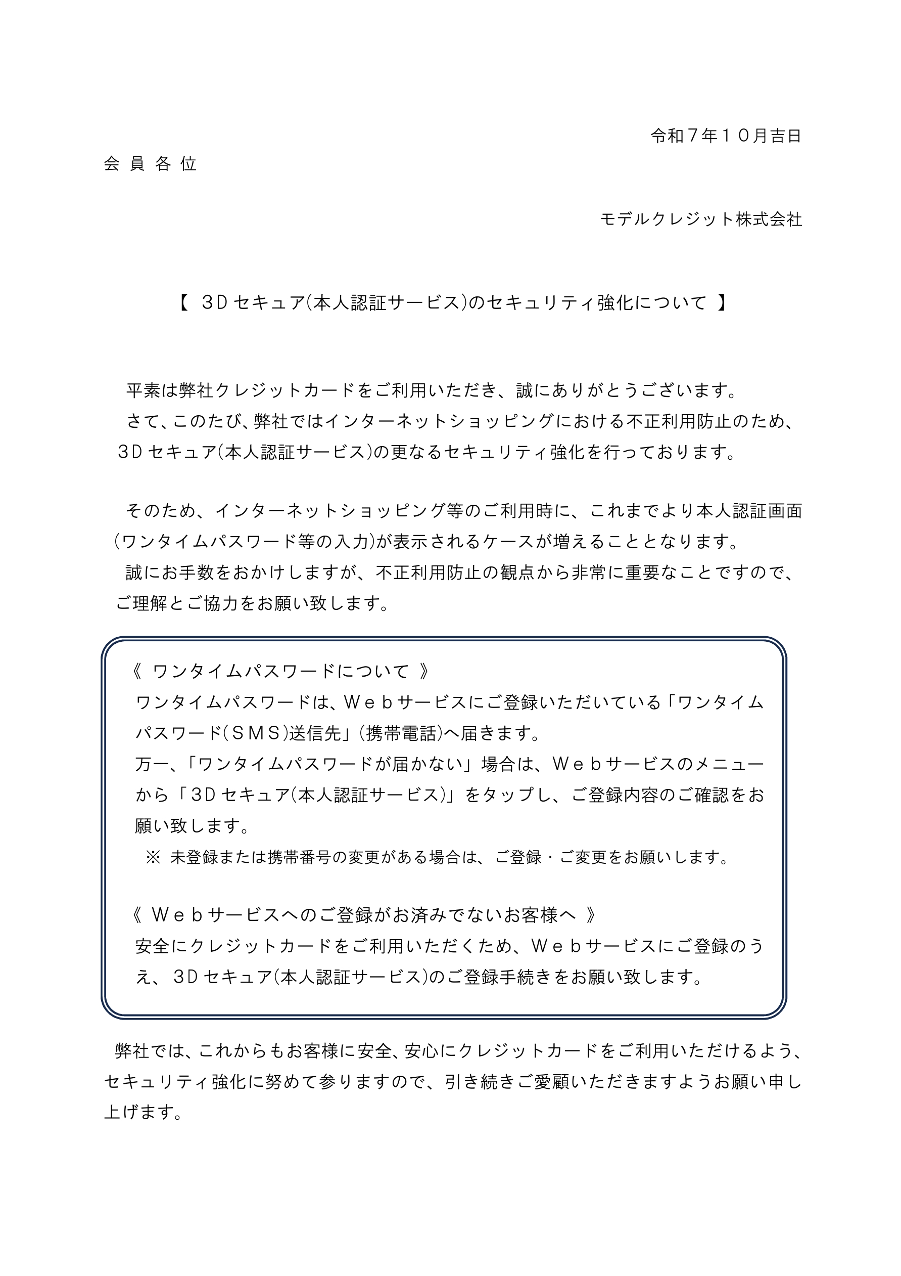 3Dセキュア(本人認証サービス)のセキュリティ強化について