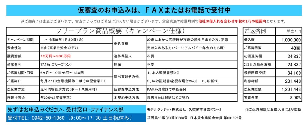 特 別 金 利 : 8.9%~14.8%(実質年率)